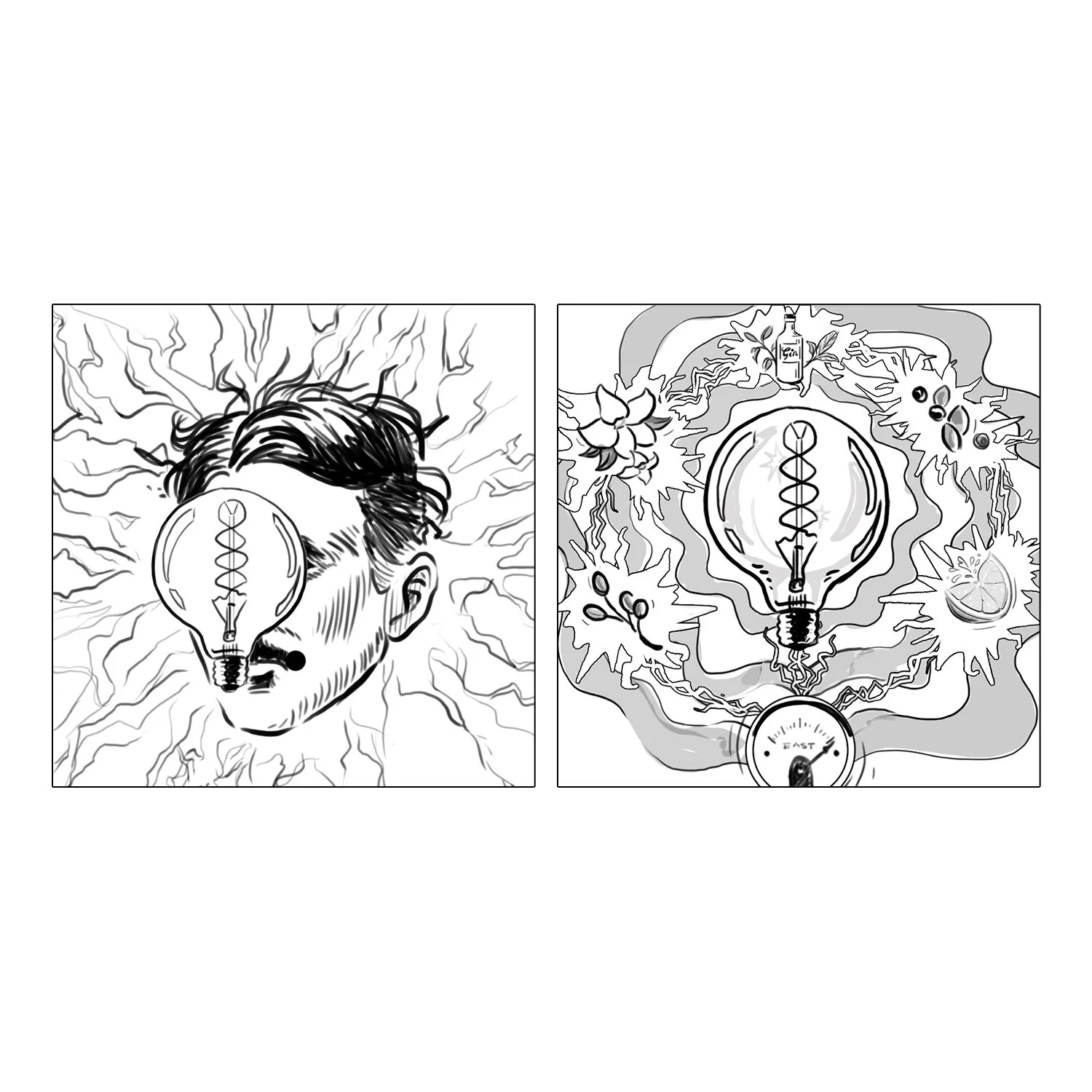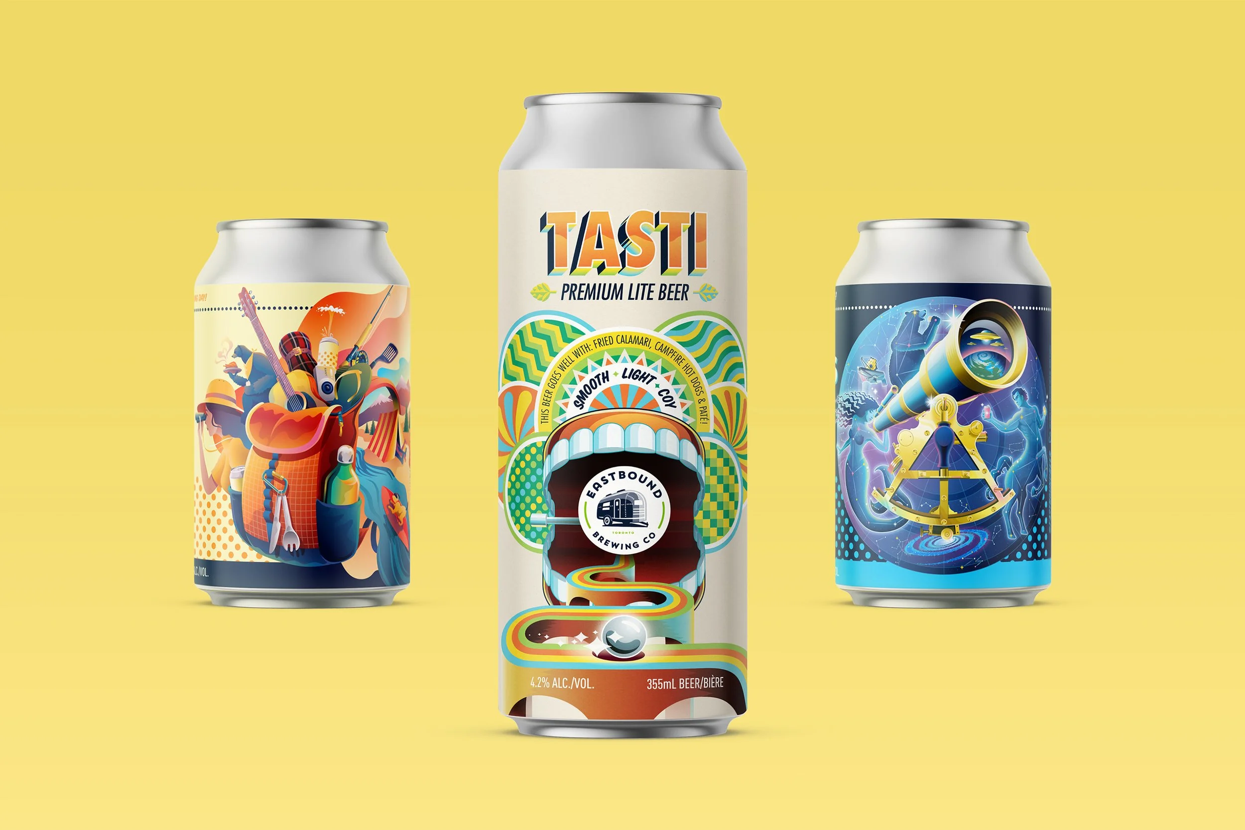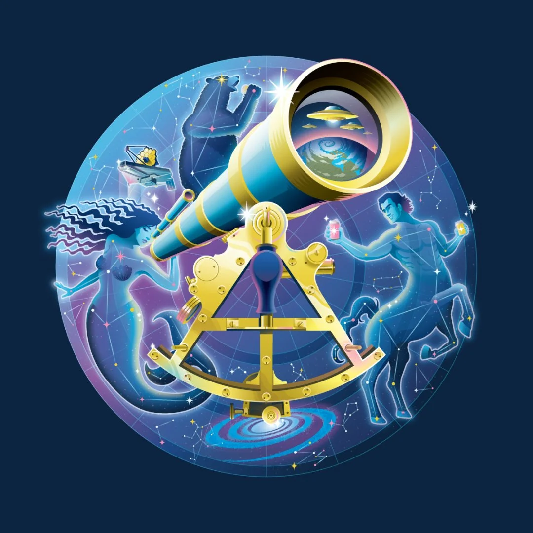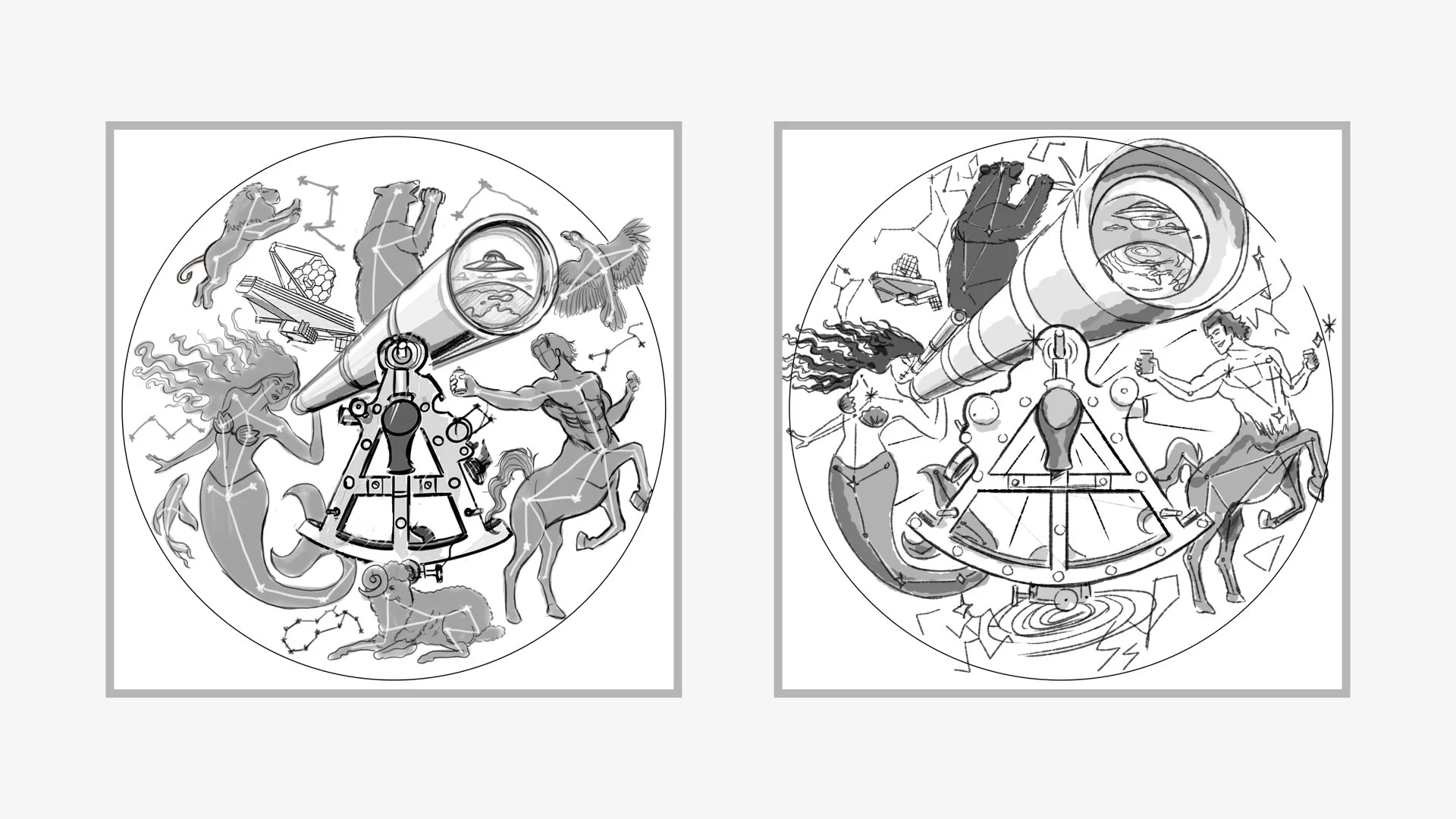 Mermaid spies UFOs while horseman offers beer in Revealed Constellations for Eastbound Brewing Co.